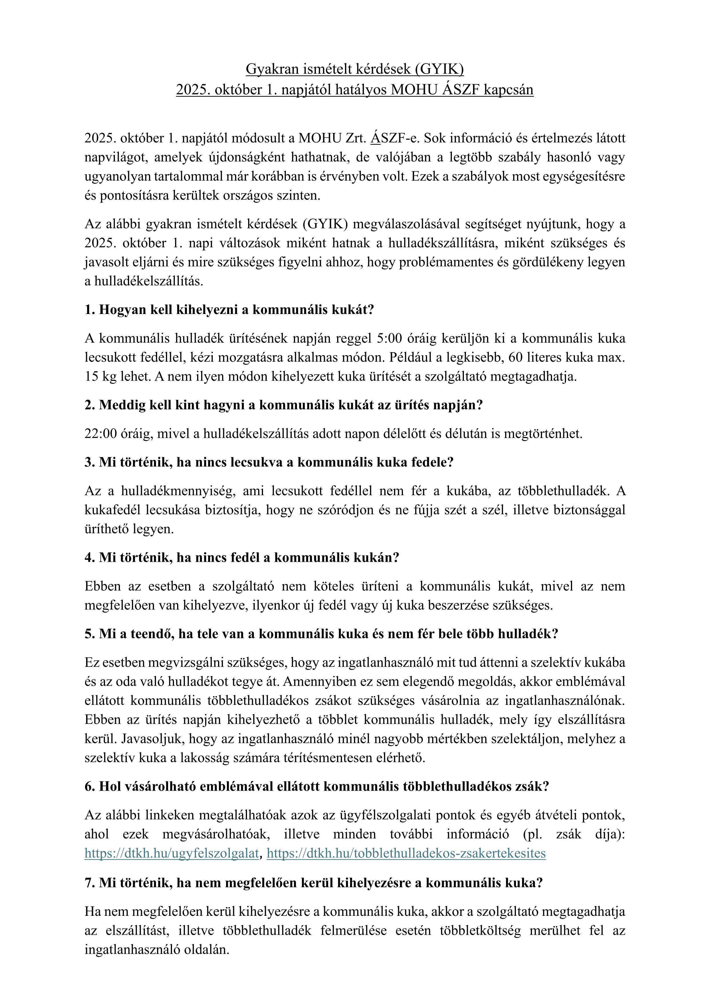 2025. október 1. napjától hatályos MOHU ÁSZF kapcsán
