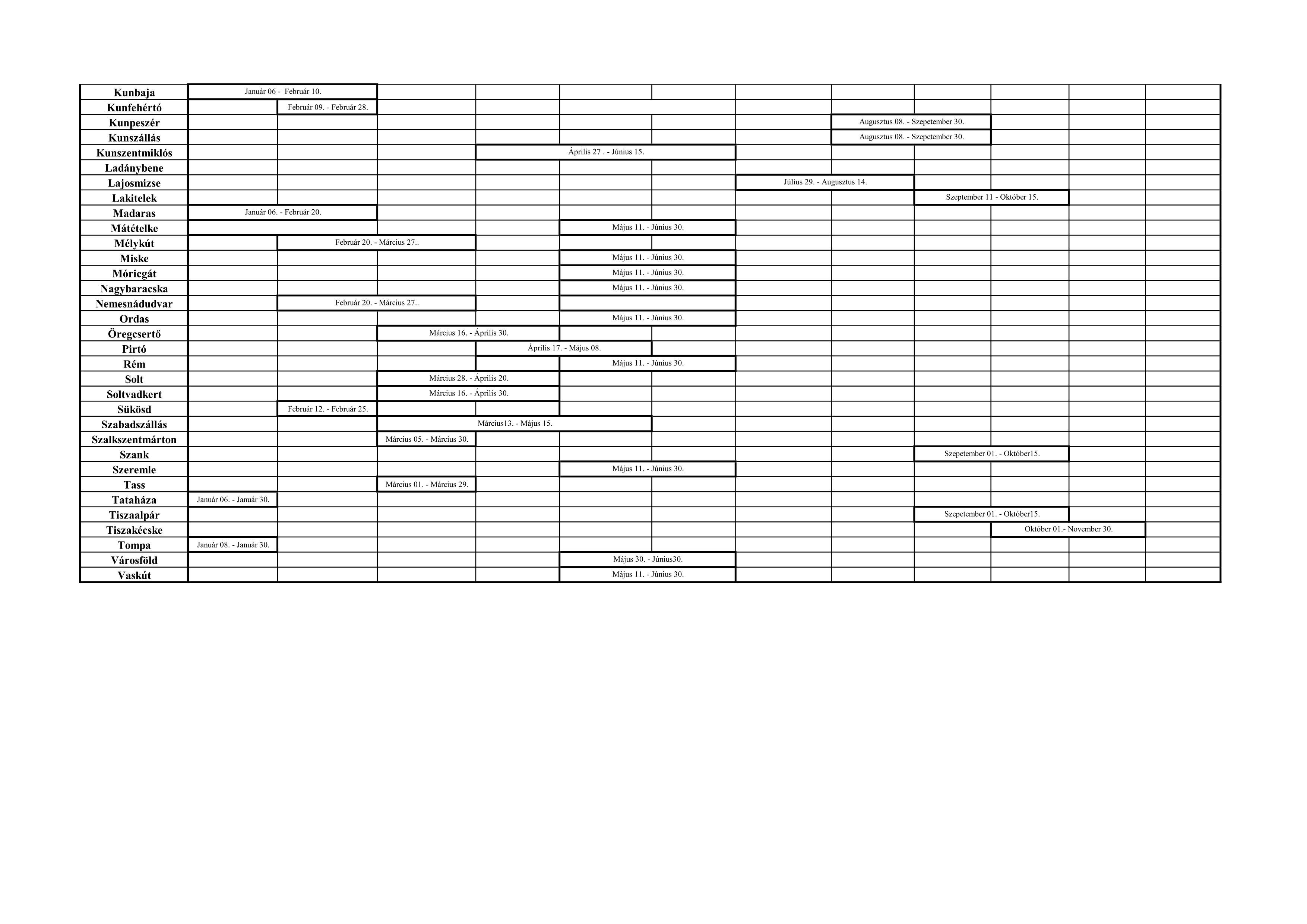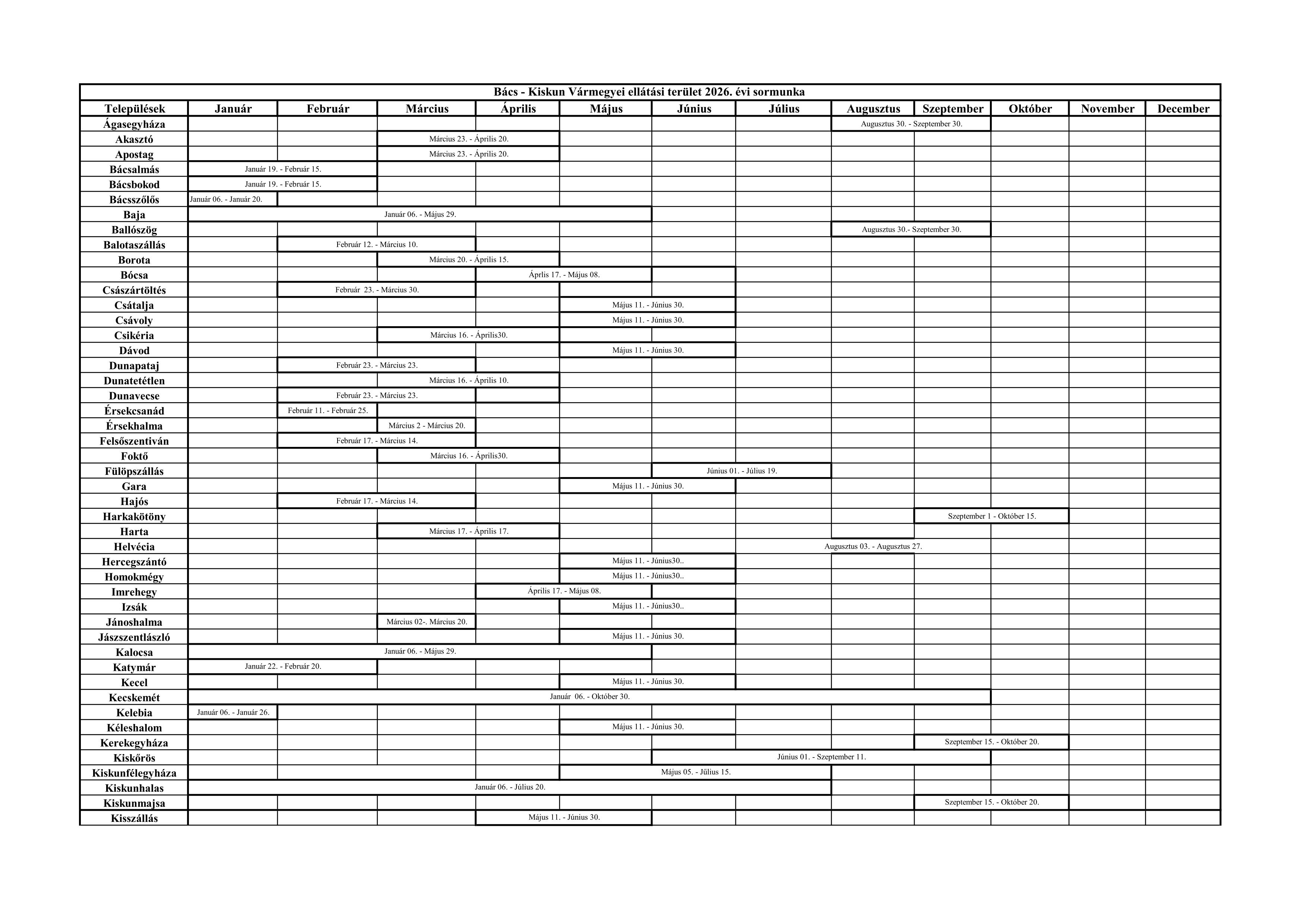 2026. évi kéményseprőipari sormunka ütemterv