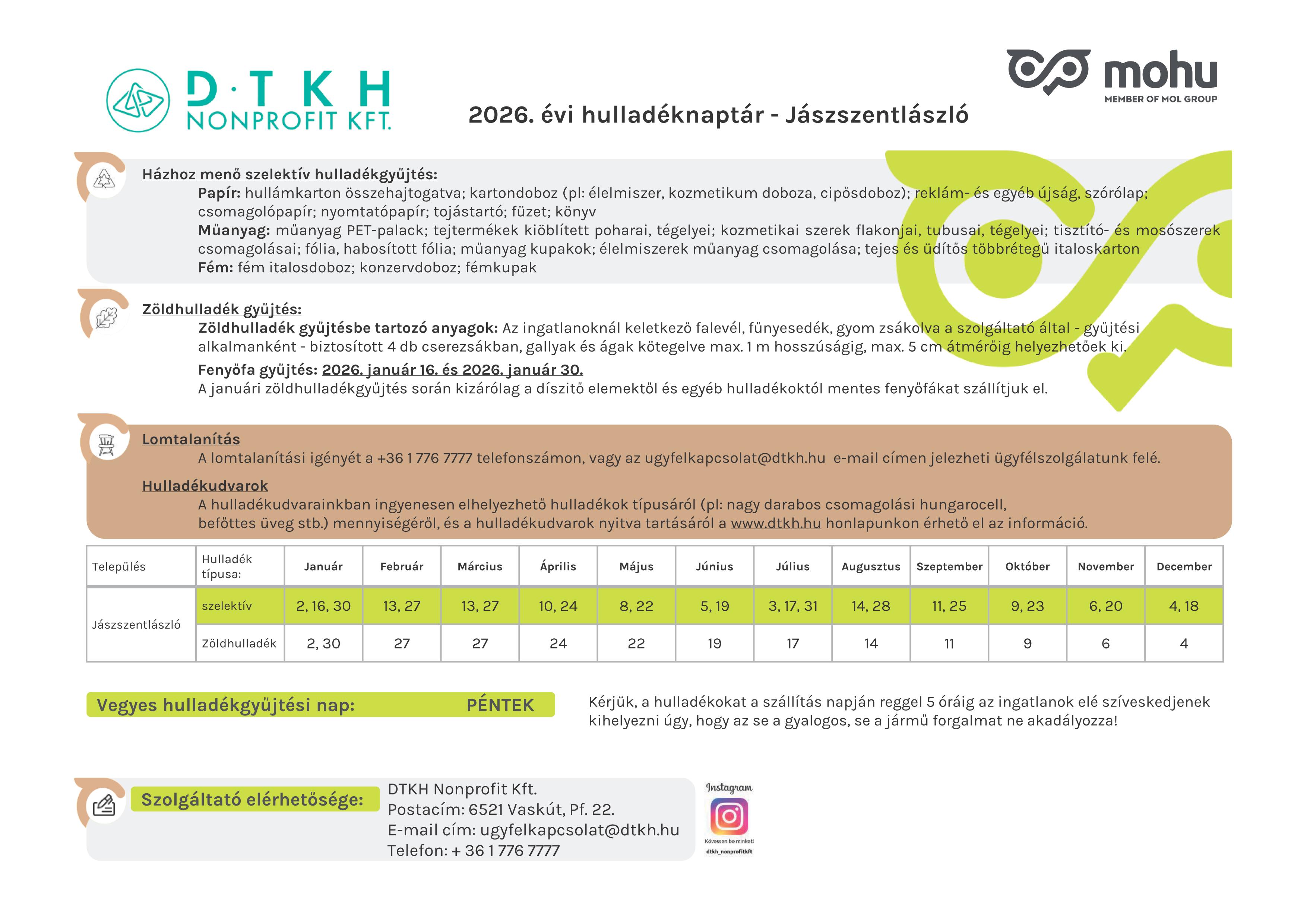 Hulladéknaptár 2026