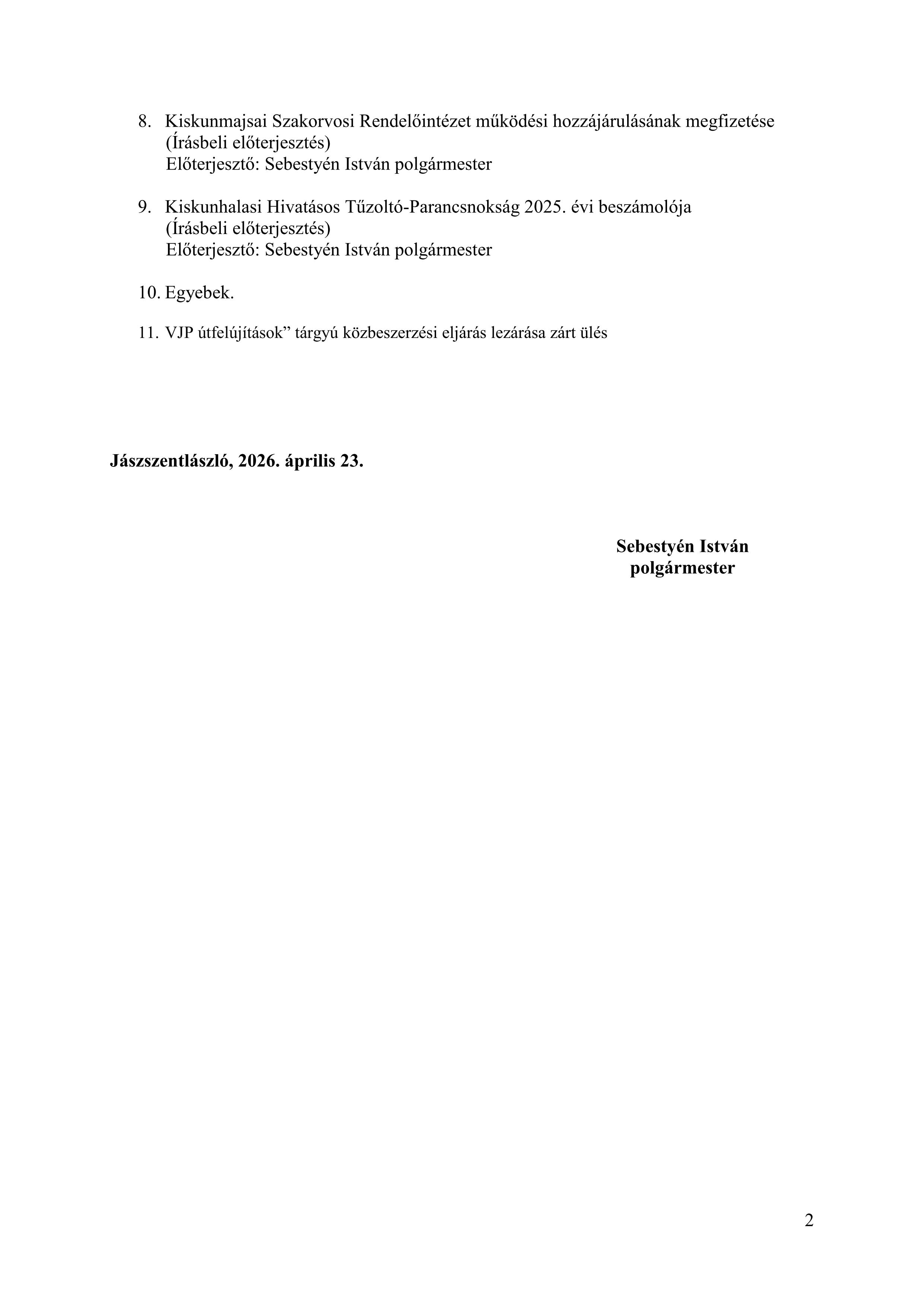 Polgármesteri határozatok
